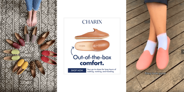 This brand does a good job of using comfort as a differentiator, while also focusing on style. Similarly, they have a good mix of SILIBI-style ads and direct response-style product storytelling.