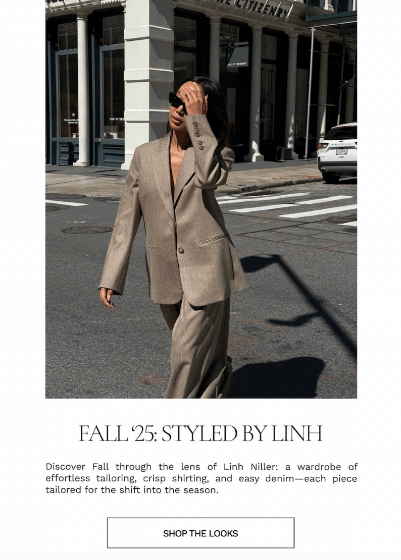 If you sell a full collection of apparel, show the reader multiple options for styling key pieces. People love this type of content and it encourages cross-category shopping.
